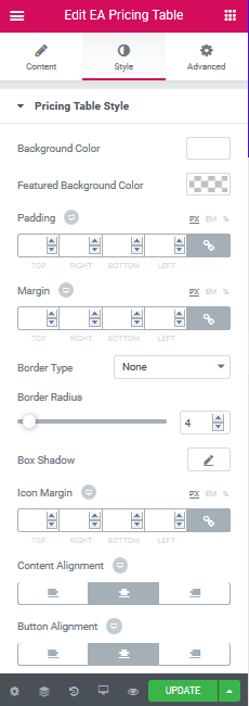 elementor price table widget